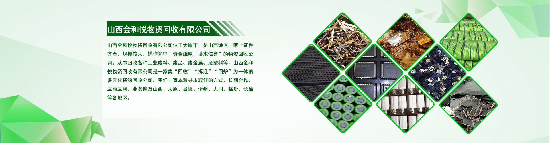 山西金和悅物資回收有限公司是一家從事廢舊物資回收,整廠設(shè)備打包回收的公司。主要可回收社會(huì)各行各業(yè)的廢舊物資,包括廢鋼廢鐵/廢銅廢鋁/稀有金屬/廢不銹鋼/廢舊機(jī)械設(shè)備/電線電纜/電池電瓶回收以及廢舊廠房整體設(shè)備打包回收。免費(fèi)上門估價(jià),現(xiàn)場(chǎng)付款,可帶工人上門,清理庫房。我公司立足于環(huán)保,利用閑置的資源,變廢為寶,循環(huán)利用,取之于民,用之于民,讓有效的資源得到合理的利用,充分體現(xiàn)它的價(jià)值。公司堅(jiān)持“以質(zhì)量求生存,以信譽(yù)求發(fā)展”的基本原則,為山西及周邊地區(qū)的企業(yè)、單位和個(gè)人提供安全、快捷的服務(wù)。歡迎各界有廢料或需要拆除的人士來電洽談業(yè)務(wù)!